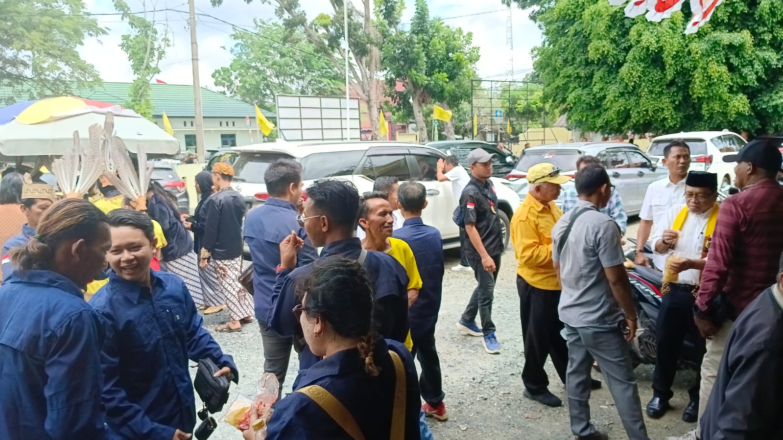 Tidak hanya sekadar berjalan kaki, mereka disambut dengan pawai megah yang melibatkan penari tradisional yang anggun dan irama musik yang menggema, menambah semarak suasana. Masyarakat dan simpatisan pun berbondong-bondong ikut serta dalam konvoi yang penuh semangat, menunjukkan dukungan luar biasa untuk pasangan ini.