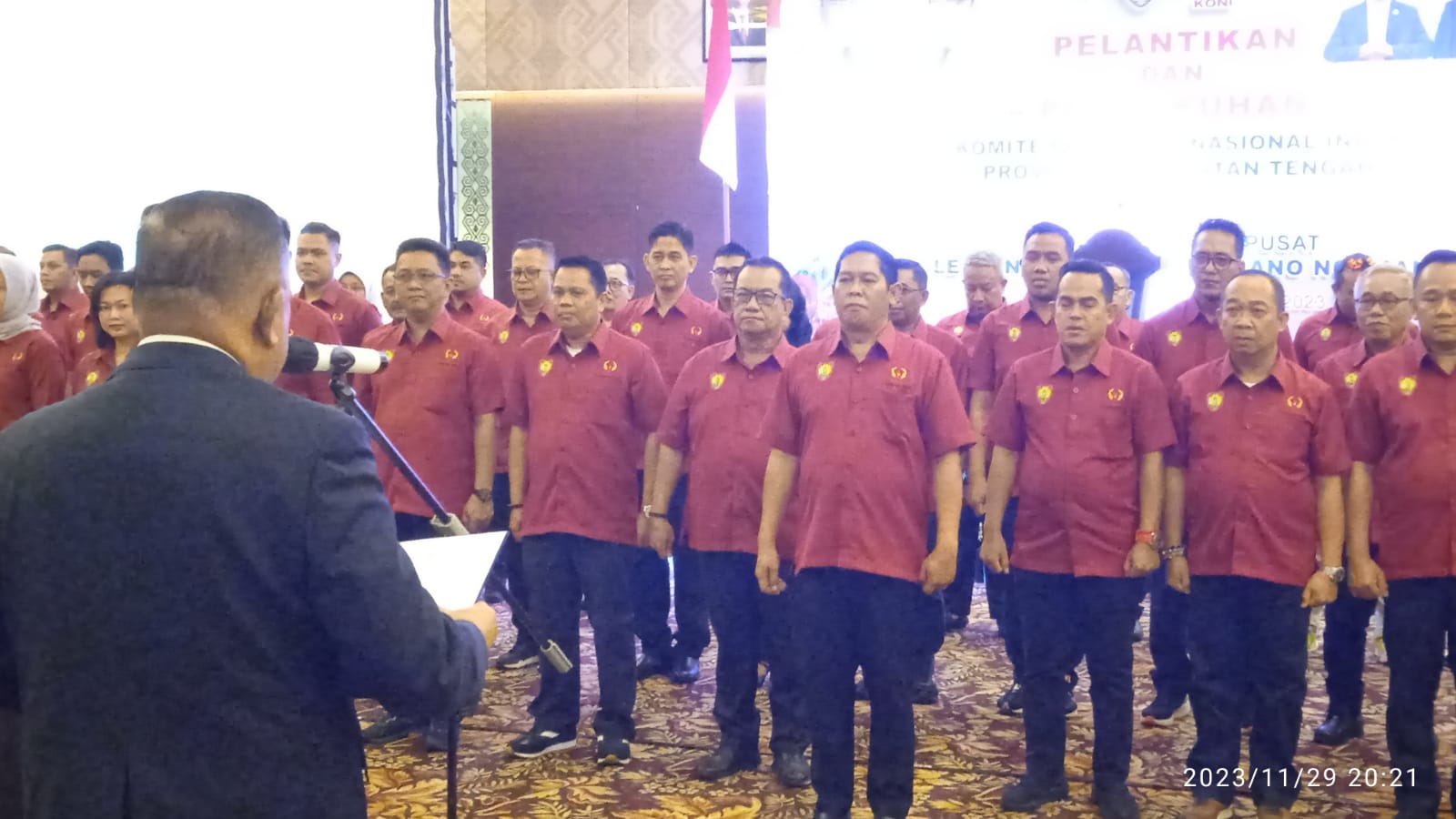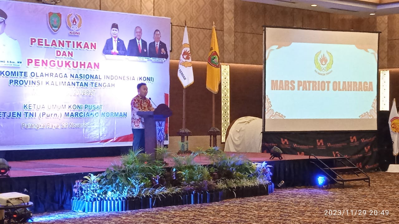 Palangka Raya, Gubernur Kalimantan Tengah (Kalteng) H. Sugianto Sabran menghadiri pelantikan pengurus Komite Olahraga Nasional Indonesia (KONI), yang berlangsung di Hotel Swiss-belhotel Palangka Raya, Rabu (29/11/23) malam.