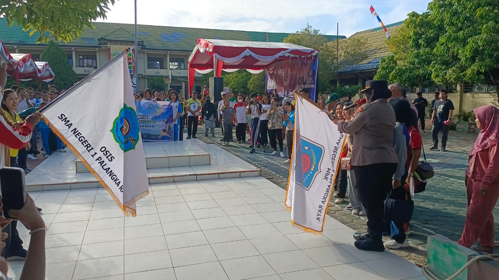 Kegiatan Jalan Sehat ini dilepas oleh Kapolsek Pahandut, Kompol Volvy Apriana, yang merupakan alumni SMAN 1 Palangka Raya angkatan 1996. Selain jalan sehat, sekolah juga mengadakan kegiatan “SMANSA Berbagi,” yang mencakup pemberian door prize kepada siswa yang kurang mampu serta pemberian tali asih kepada mantan-mantan Kepala SMAN 1 Palangka Raya.