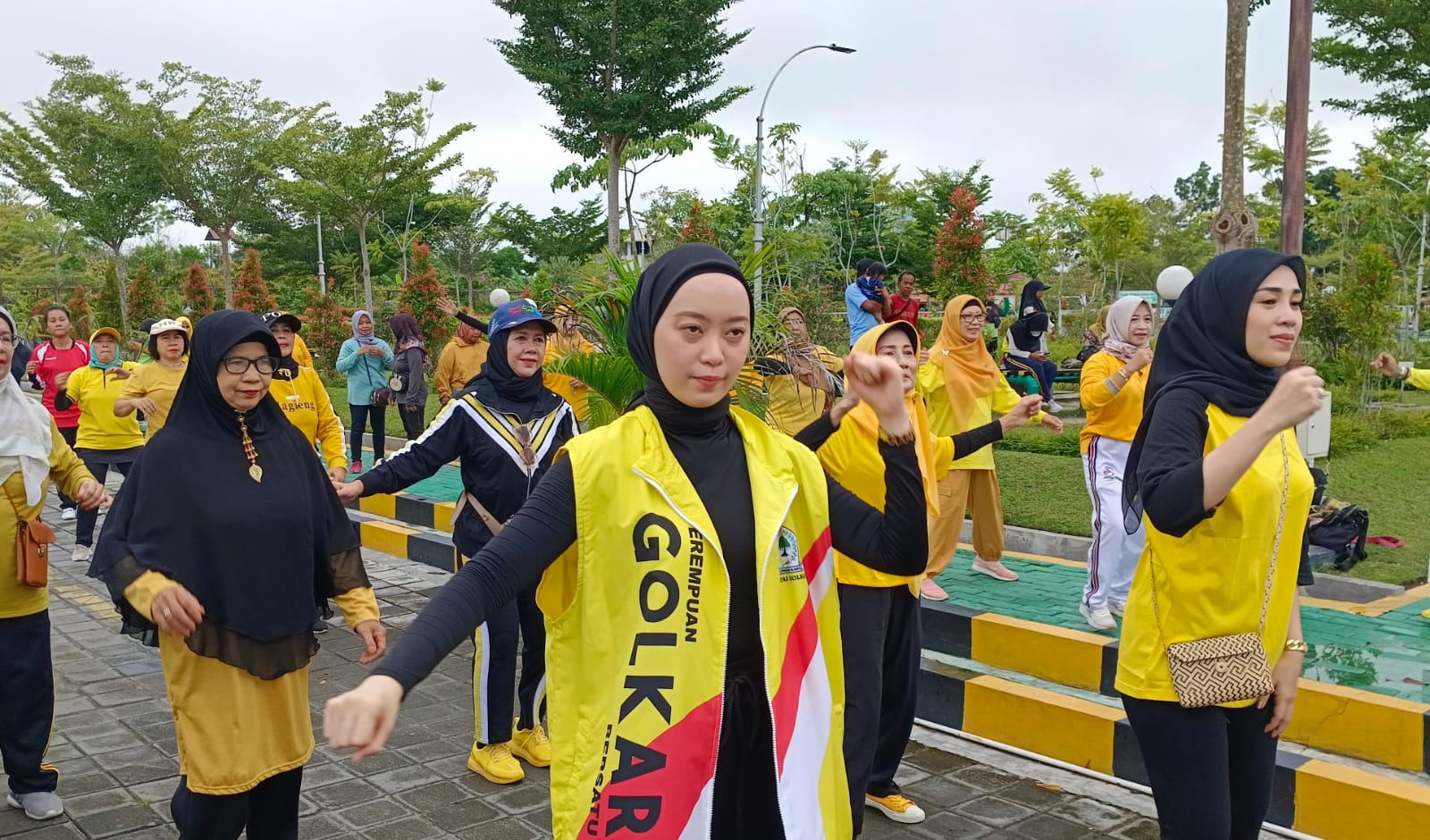 Palangka Raya | Bersama masyarakat, Ikatan Istri Partai Golongan Karya (IIPG) Kota Palangka Raya menggelar kegiatan senam bersama yang dilaksanakan bertempat di Taman Nyahu Papan Taliu, Jalan Sethadji Palangka Raya pada Sabtu (20/1/24).