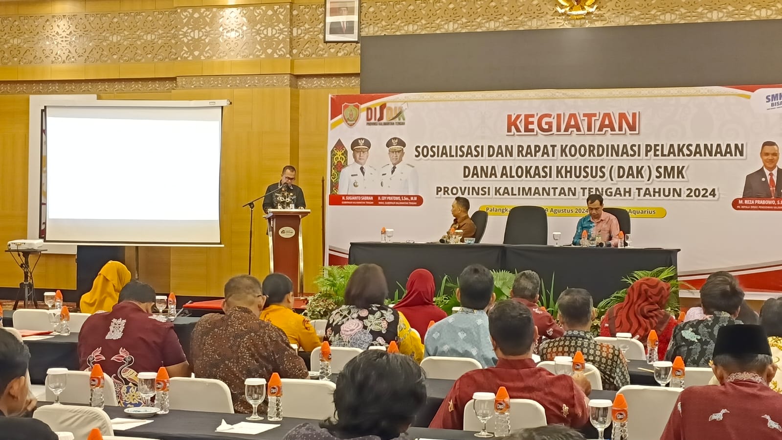 Palangka Raya | Dinas Pendidikan Provinsi Kalimantan Tengah mengadakan Sosialisasi dan Rapat Koordinasi mengenai Dana Alokasi Khusus (DAK) Fisik untuk Sekolah Menengah Kejuruan (SMK) Tahun 2024, Kamis (8/8/24) pagi. Kegiatan ini bertujuan untuk memastikan pengelolaan dan penggunaan dana tersebut dapat meningkatkan sarana dan prasarana pendidikan di daerah.