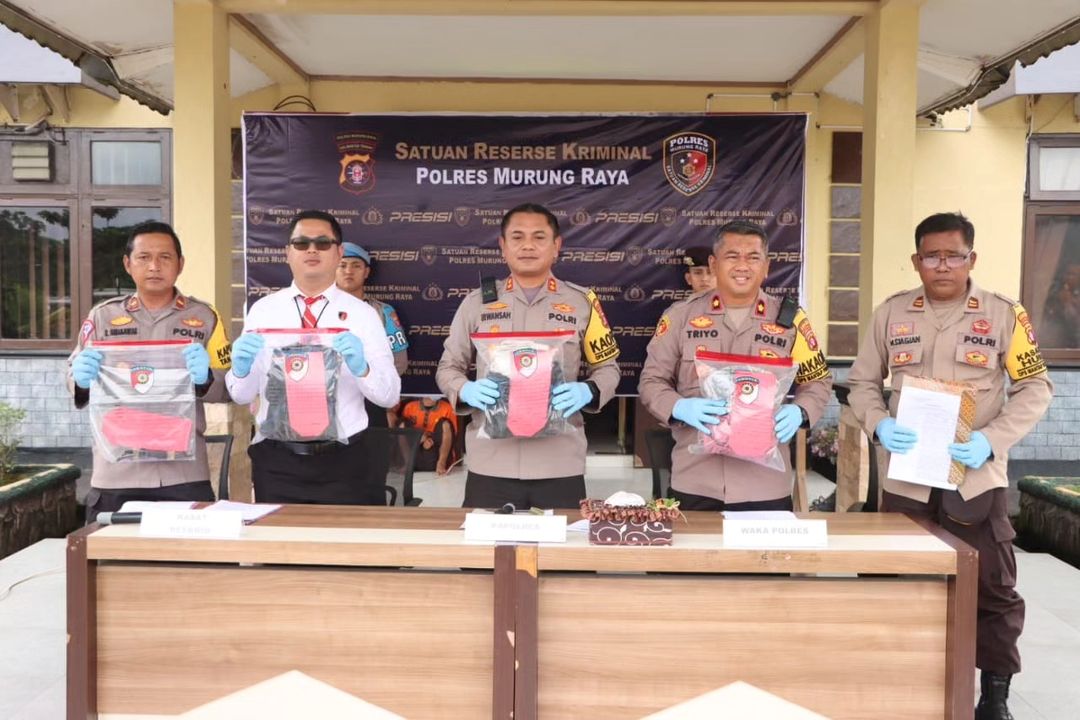 Konferensi pers ini dipimpin langsung oleh Kapolres Murung Raya, AKBP Irwansah, S.I.K., didampingi sejumlah pejabat penting, termasuk Wakapolres Kompol Triyo Sugiyono, S.H., Kasat Reskrim AKP Syaiful Rizal, S.T.K., S.I.K., dan Kapolsek Tanah Siang Ipda Rojenses Simanjuntak, S.I.P.